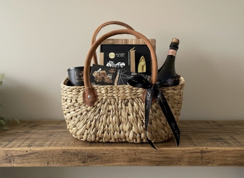 Beautifully presented in our woven keepsake basket and finished with Luxe Studio Gifting’s signature ribbon, this hamper delivers a striking first impression and a memorable gifting experience.