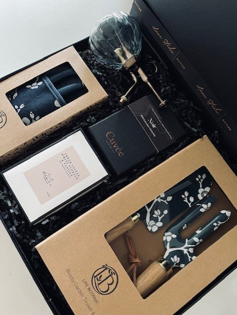 Beautifully presented in a sleek textured black magnetic close gift box with ribbon. Personalise your message at checkout or email info@luxestudiogifting.com.au