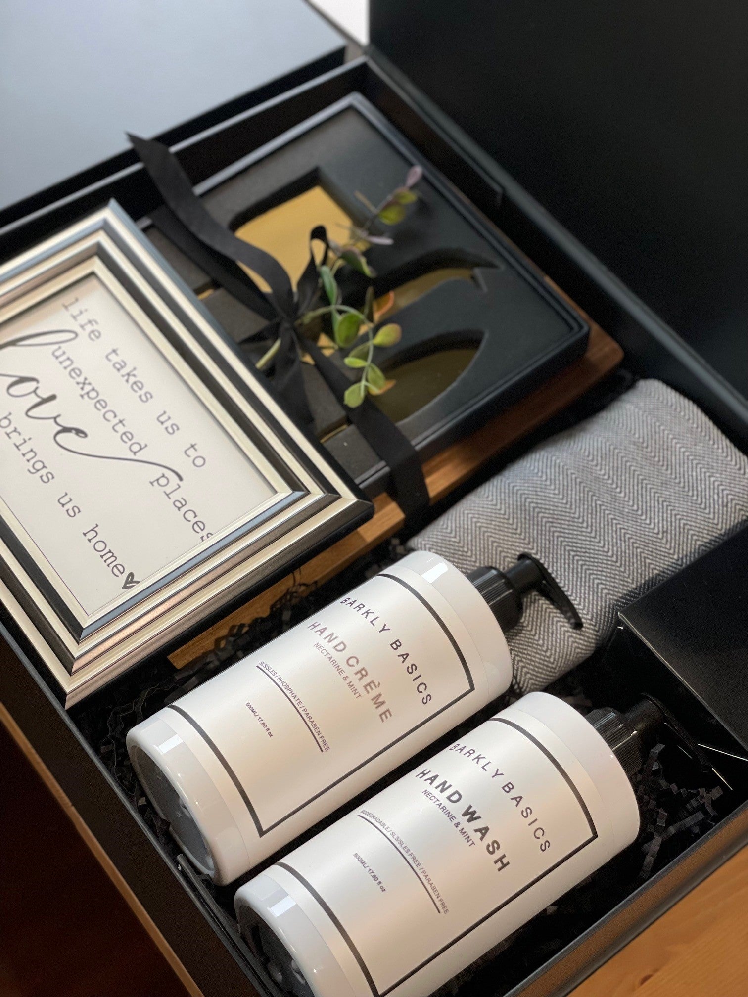 Beautifully presented in a sleek textured black magnetic close gift box with ribbon. Personalise your message at checkout or email info@luxestudiogifting.com.au