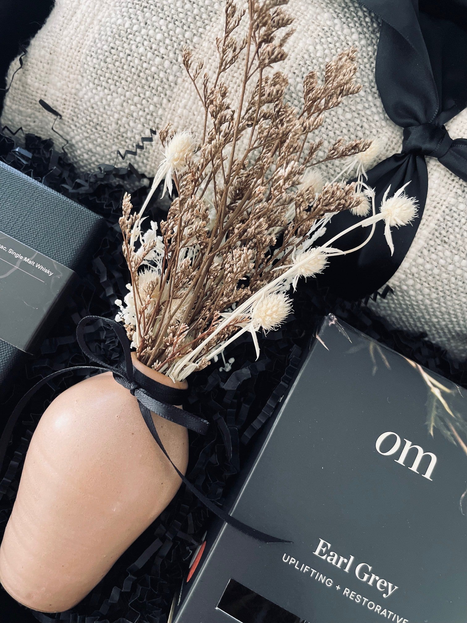 Designed to inspire moments of calm and connection, The Luxe Retreat is a beautifully curated home hamper that combines comfort, artisan craftsmanship, and timeless design. Each piece invites slow living - from the cotton throw to the indulgence of hand-blended organic tea and rich dark chocolate. Finished with a contemporary vase arrangement, this is the perfect luxury home gift for housewarmings, settlement celebrations, or heartfelt thank-yous.