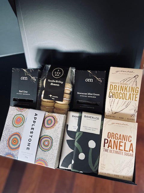 This premium tea and treat gift box features a selection of locally made and ethically sourced favourites, including:
