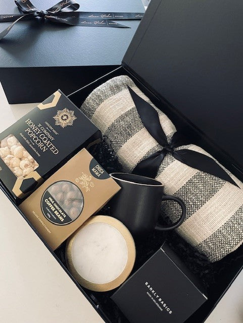 Beautifully presented in a sleek textured black magnetic close gift box with satin ribbon. Personalise your message at checkout or email info@luxestudiogifting.com.au